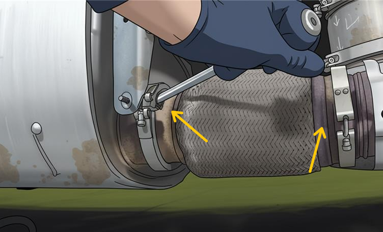 Remove both clamps holding the flex pipe between the DPF and SCR. (See Figure 6)
